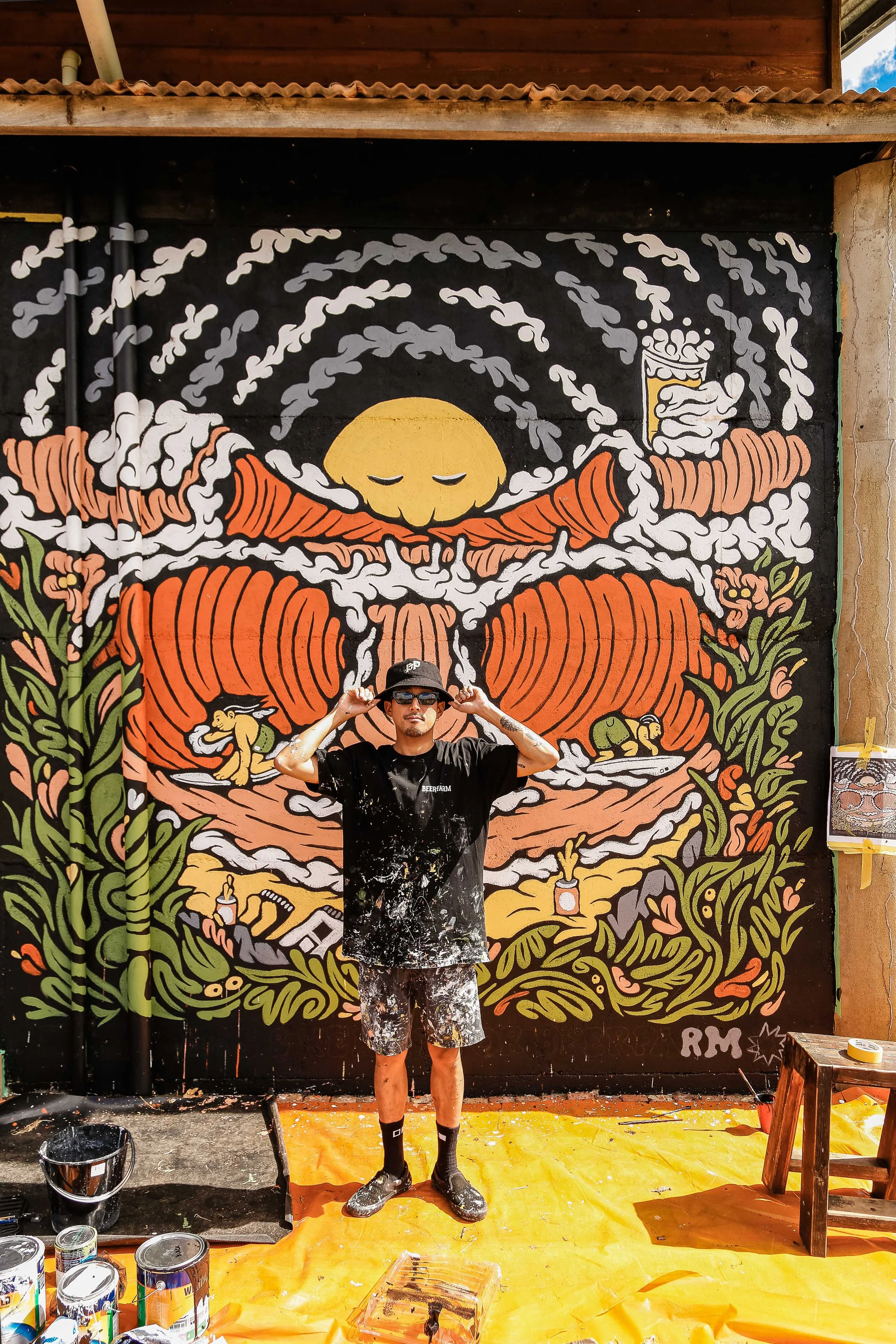 富山県出身。18歳で渡豪後、サーフィンに魅了されシドニー・ノーザン・ビーチに滞在を決める。シドニー工科大学のビジュアルコミュニケーション学科にてイラストレーションを専攻。卒業後、フリーランスイラストレーター、アーティストとしてオーストラリアで活動を開始。アナログのインクドローイングからデジタルドローイングをもとに作品やクライアントワークを制作。これまで国内外で様々な企業やアパレルブランドとのコラボレーションを手がける傍、個展、グループ展での展示も行なっている。巨大な壁画から紙やキャンバスへの繊細な絵まで精力的に活動している。